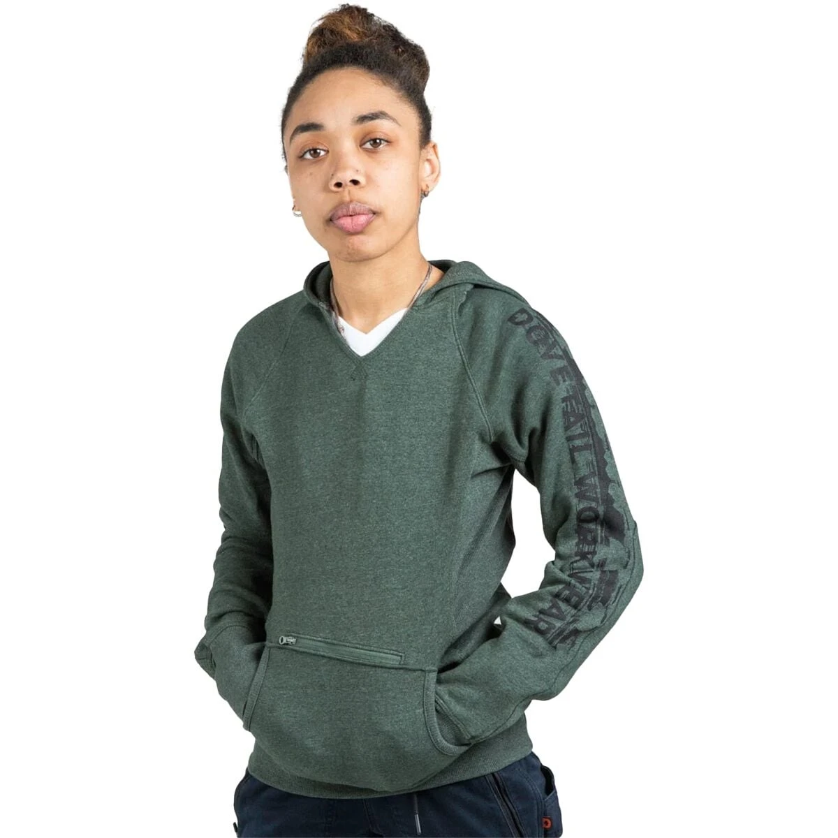 Hardworking pockets include a zip front pocket for the stuff you need to lock down. Plus a deep front handwarmer pocket. Thumbholes make it extra cozy and ensure sleeves stay put when lifting and reaching. Reinforced elbows dial up the durability. That’s a lot of extra-ness for a humble hoodie. Yep, this hoodie is a goodie.