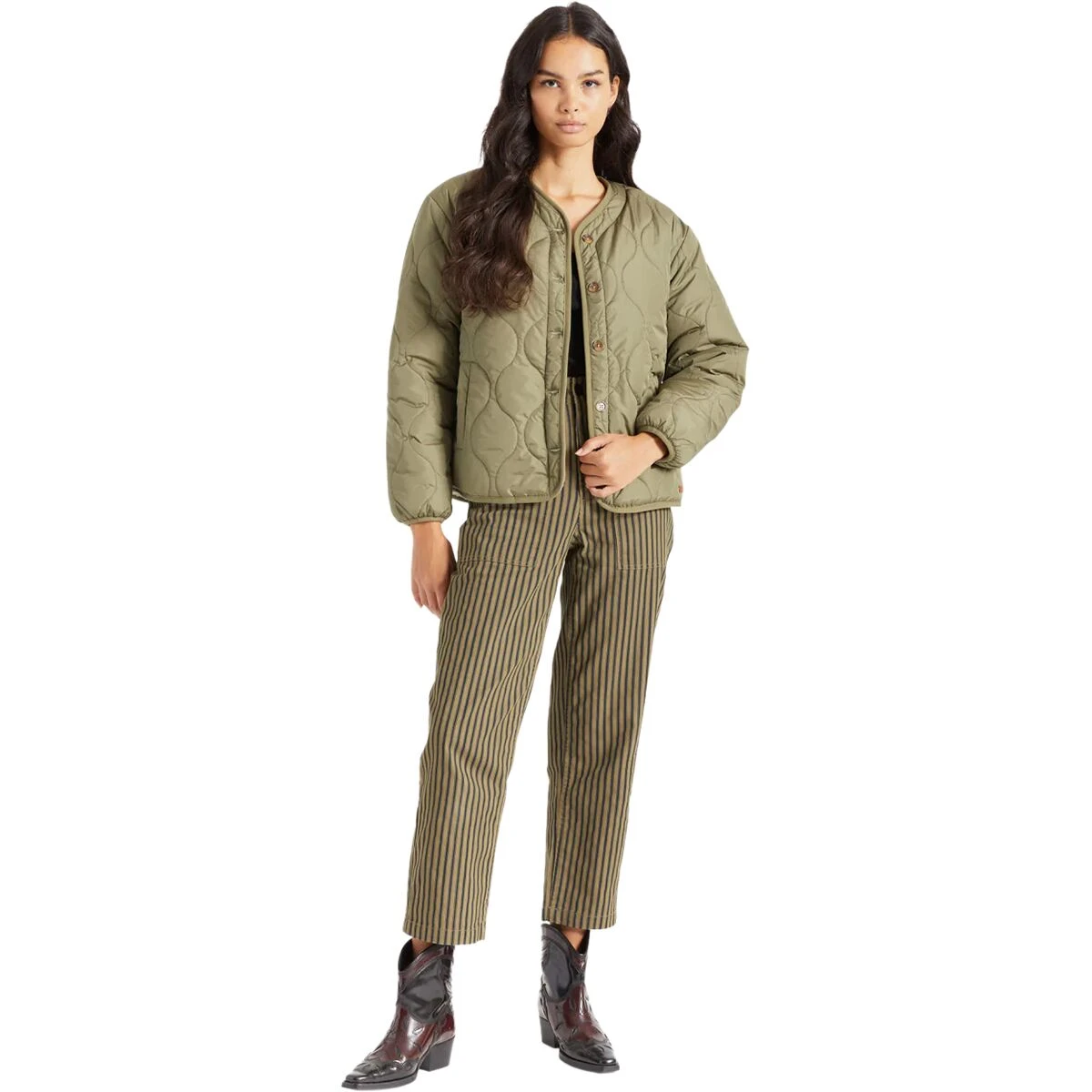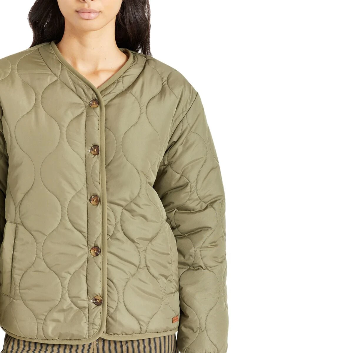 - Buttoned front provides a shirt-jacket aesthetic