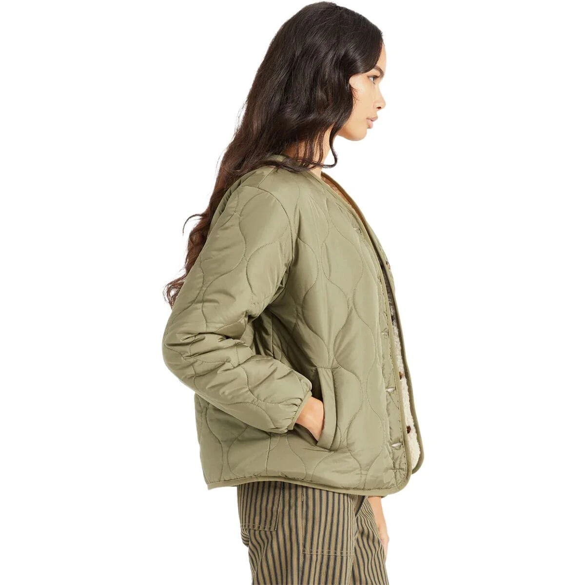 Fuzzy or sleek, the Brixton Sherpa Reversible Padded Jacket gives us two looks in one, while the quilted exterior and fleecy interior make both options cozy.