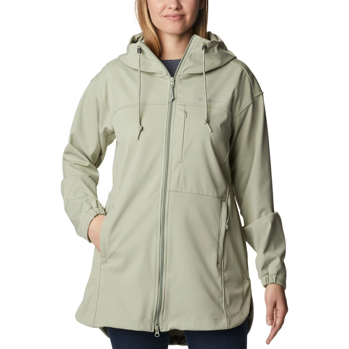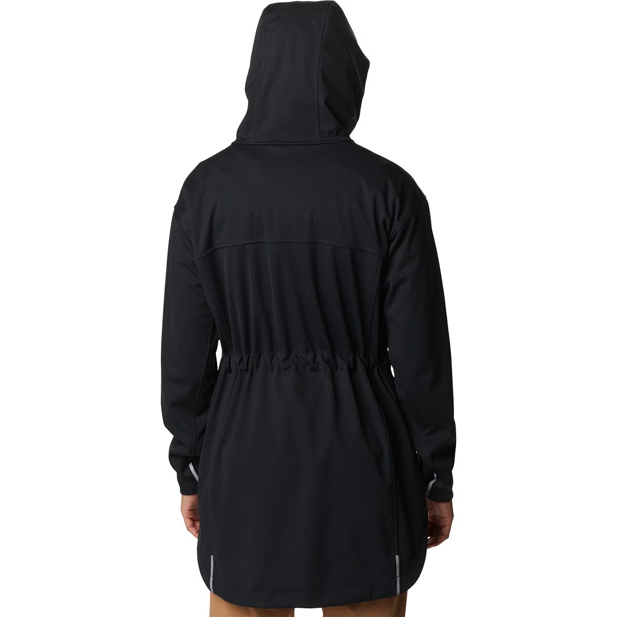 Perfect for spring and fall layering, the Flora Park Softshell Jacket adds some extra warmth to our cool-weather hikes or everyday outings. A longer cut provides added coverage from chilly gusts, while a drawcord adjustable hood and waist let us dial in the perfect fit.