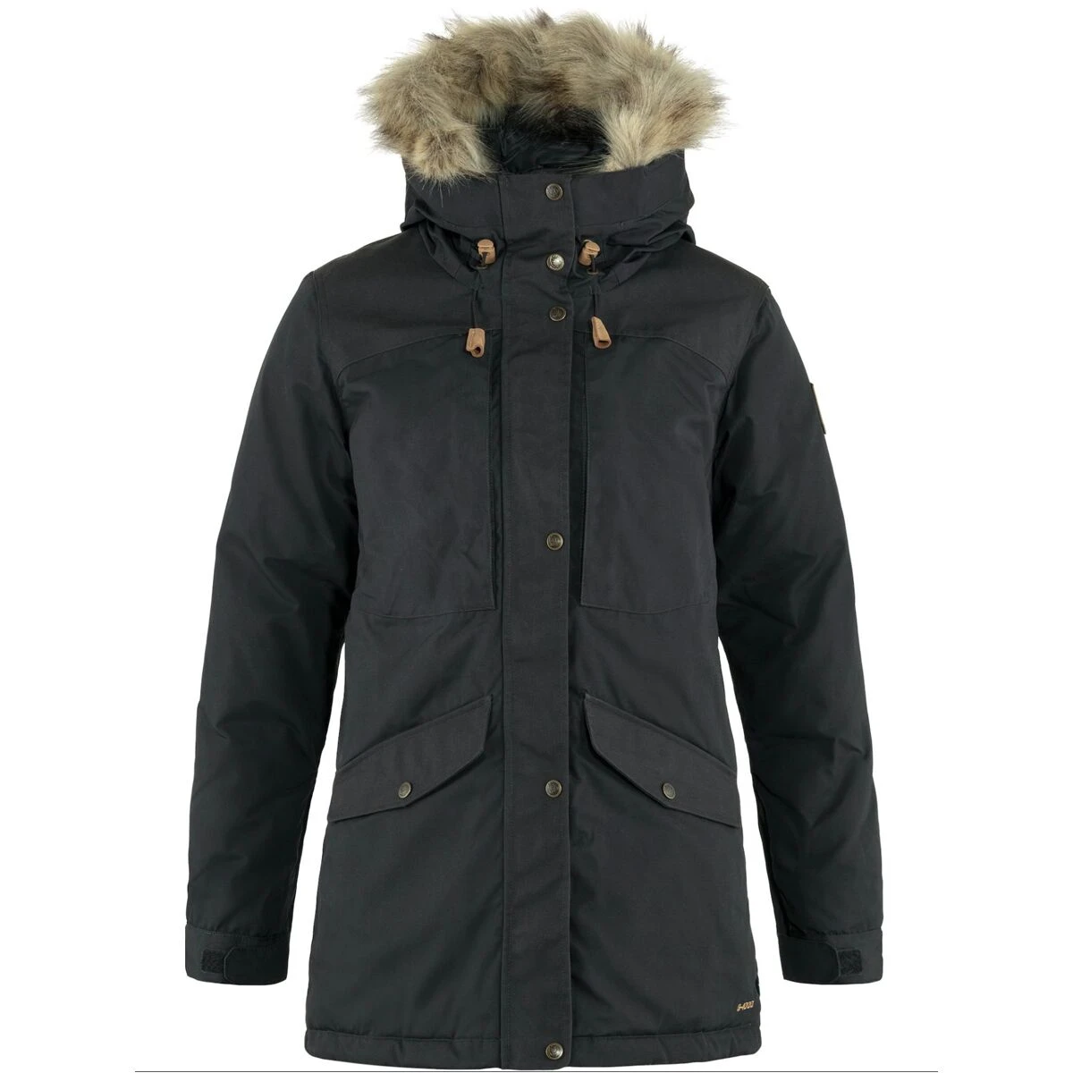 - Deep hood with faux fur trim adds function and style
