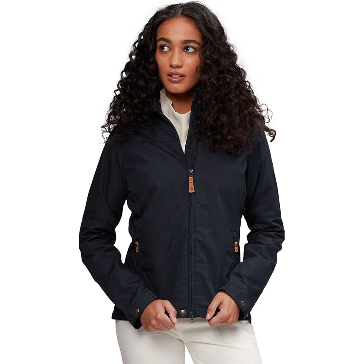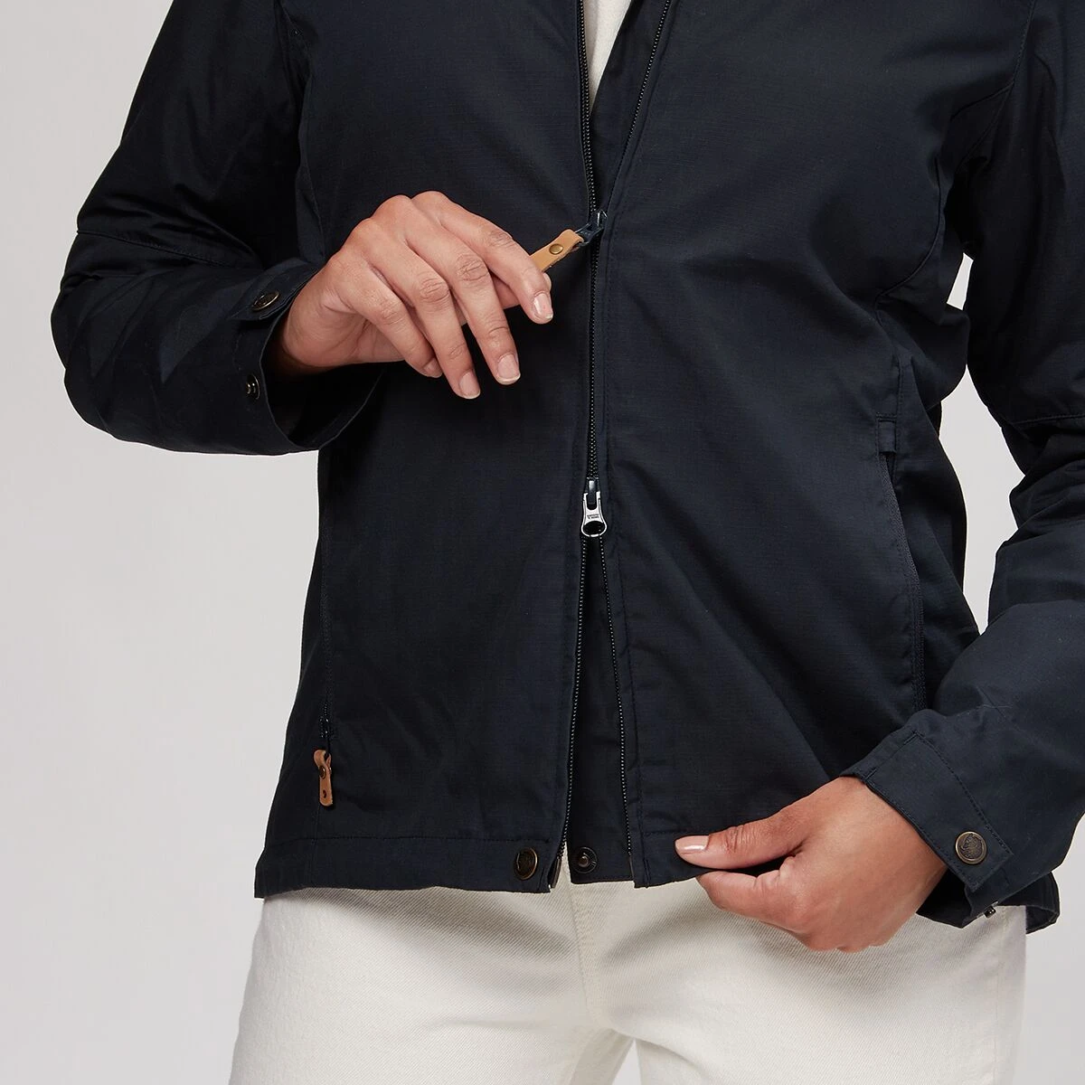 The Fjallraven Women’s Stina Jacket is a spunky way to stay dry through gray, misty days. This jacket combines two types of G-1000 fabric to fend off spits and drizzles. A lightweight cotton-blend ripstop on the body means the Stina stays supple and fairly silent. Rugged G-1000 Eco serves to reinforce the shoulders when we have the weight of the world—or luggage—on our backs.