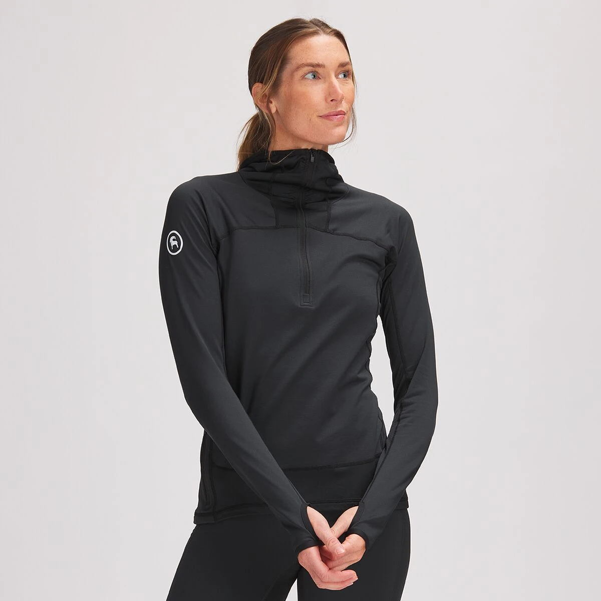 - Fixed hood and thumbhole cuffs provide coverage and security