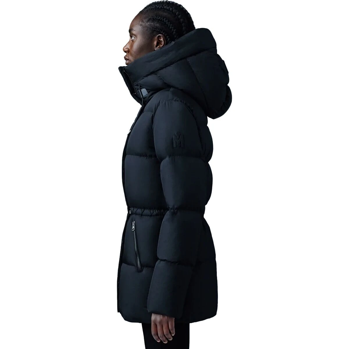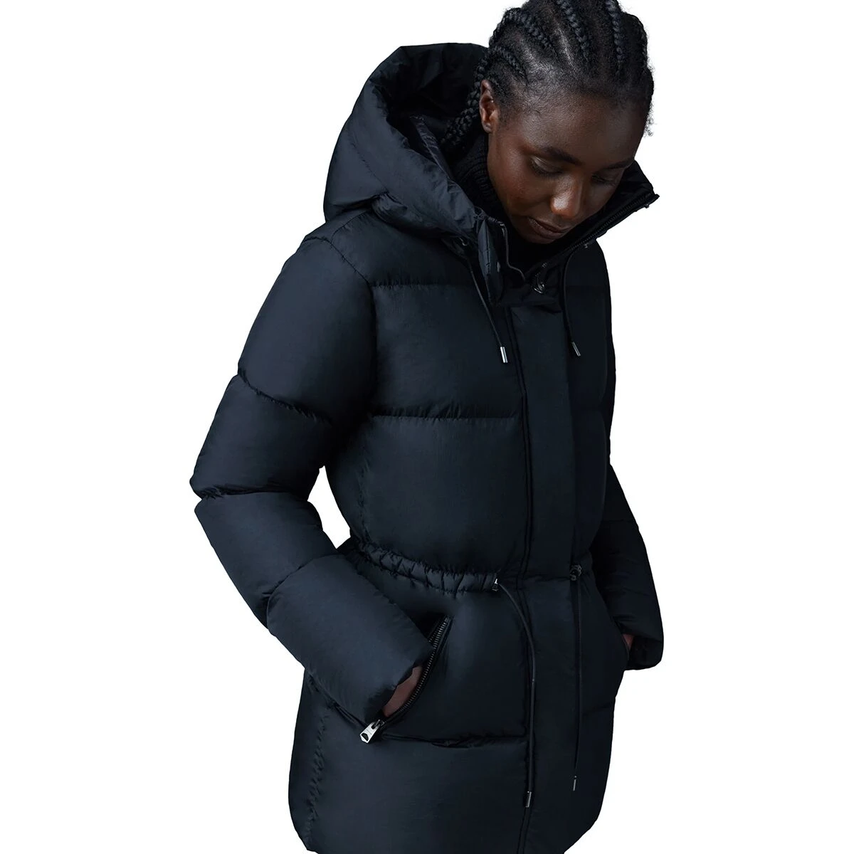 The warm, winter-ready Freya Down Jacket from Mackage brings us a unique and fresh look as we wander our cold city streets. Duck down insulates from the chill and provides a windproof interior, while the full hood with storm flaps works well to keep weather from falling down the neck.
