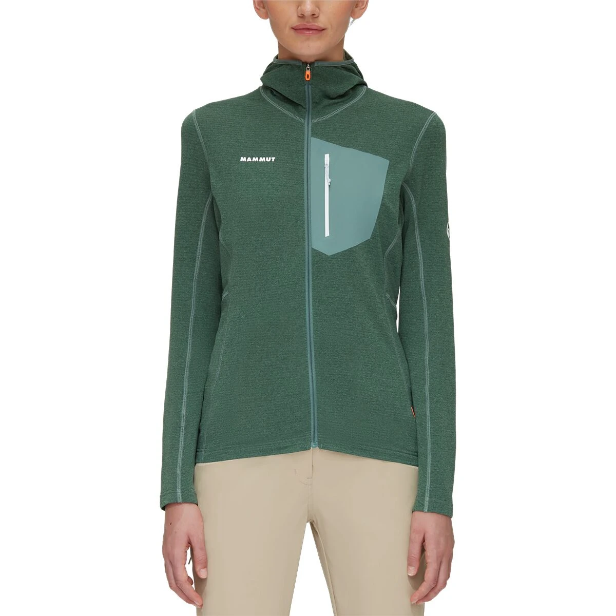For a midlayer that won’t restrict or overheat, we zip into the Mammut Aenergy Light ML Hooded Jacket. The stretchy gridded fleece construction frees our movement as we climb and shred, wicks away moisture as we test our limits, and holds in warm air when we’re standing still to take in the view.