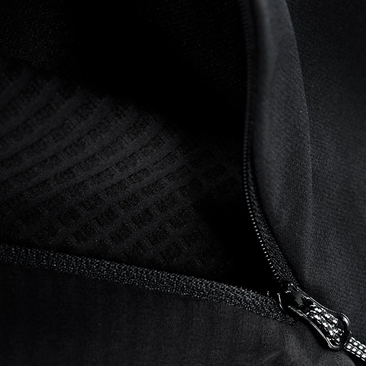 - Hybrid fabric mix to minimize weight and maximize breathability