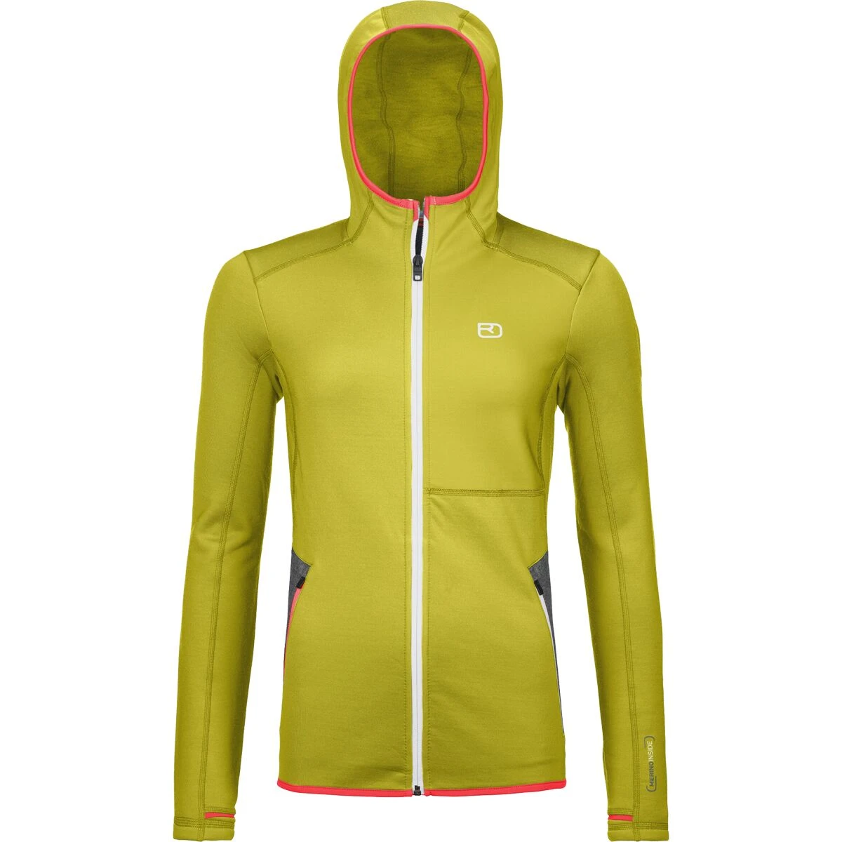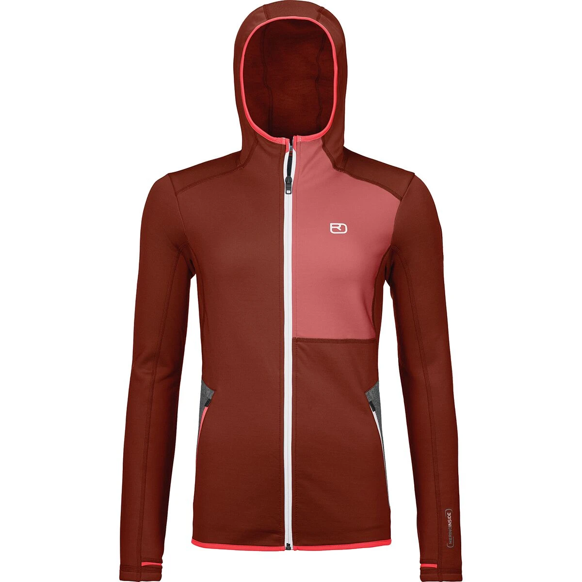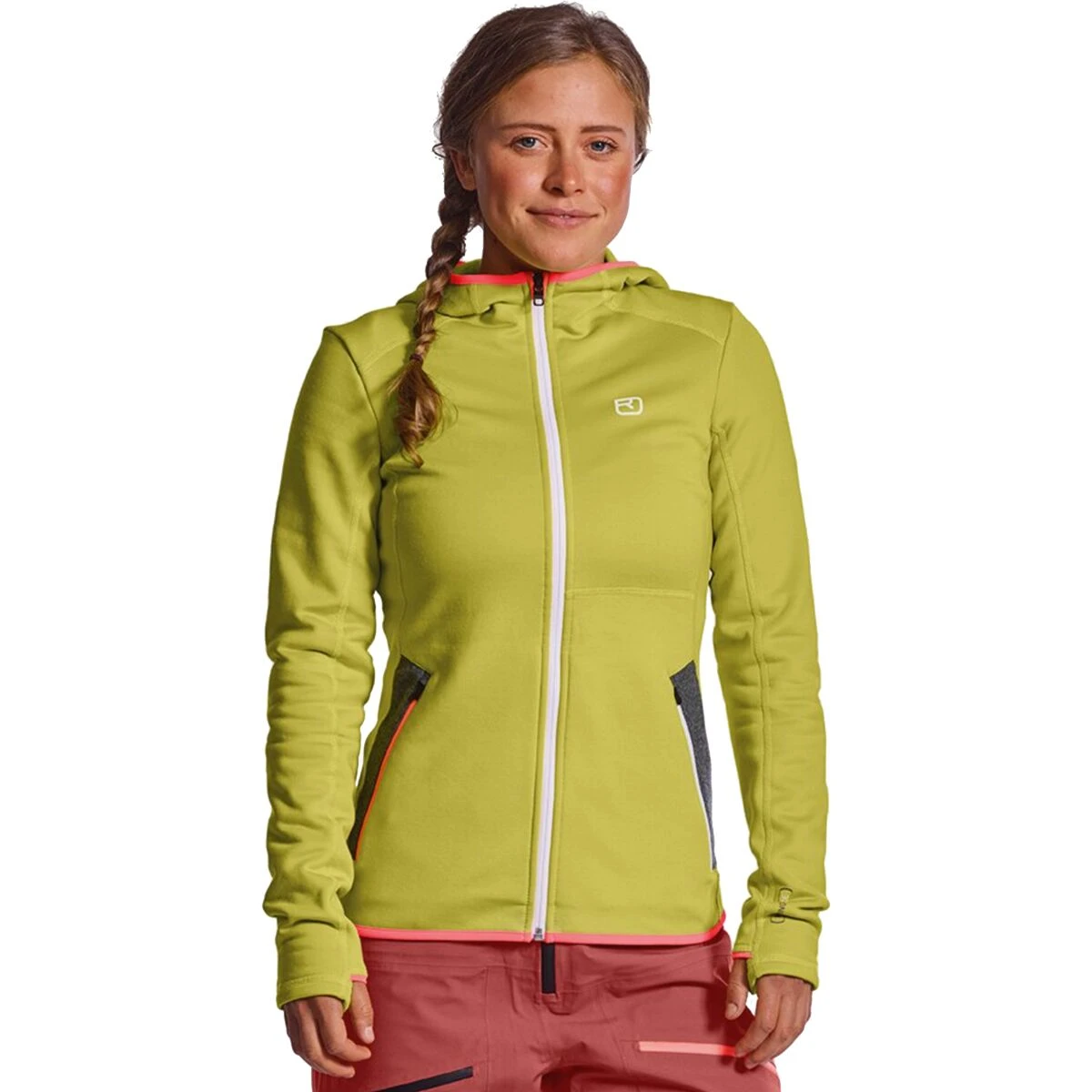 ORTOVOX’s Fleece Hooded Jacket is our do-it-all outdoor midlayer for winter tours or shoulder-season hikes. The stretchy and durable fleece construction puts moisture-wicking merino wool next to our skin and breathable, quick-drying polyester on the outside to help us stay comfy even when we break a sweat.