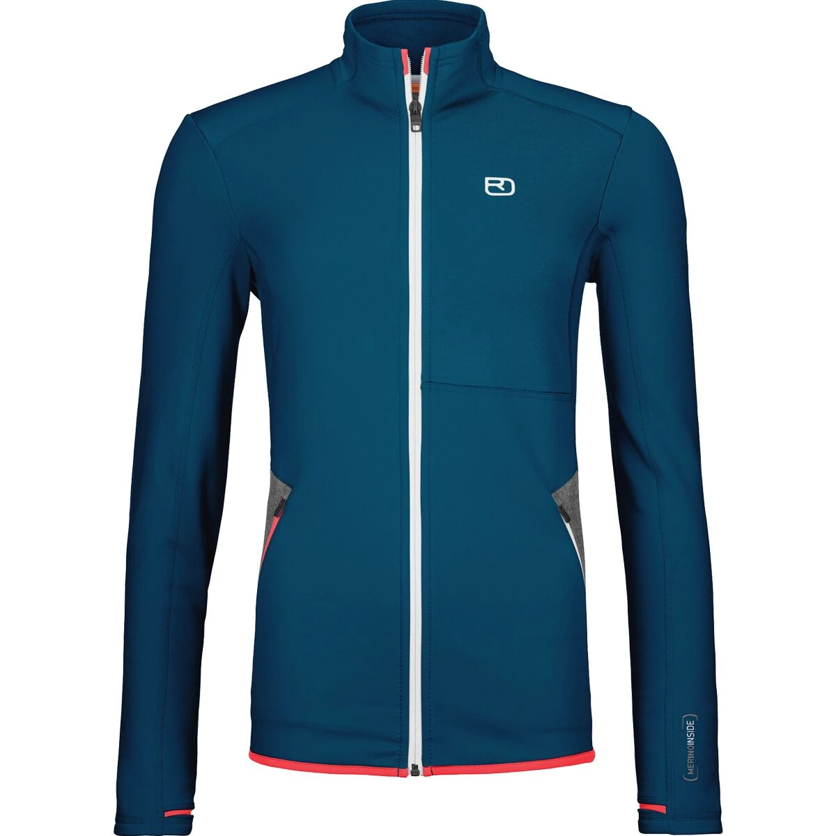Ortovox’s Fleece Jacket uses a special knitting process to create a sporty look that compliments its technical design. Merino wool and recycled polyester make an effective fleece that wicks moisture, regulates body temperature, and reduces the buildup of odors. Its stretchy composition and regular fit offer the freedom of movement we need on rockface or the skin track.