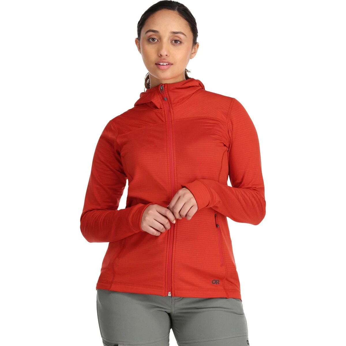 Outdoor Research’s Vigor Full-Zip Hooded Jacket features ActiveTemp technology to manage our body temperature as the weather changes or our activity levels go up and down. The Vigor’s grid fleece pattern traps pockets of warm air against our body to keep us warm while wicking sweat and breathing moisture vapor to keep us cooler when we’re burning more calories. That thermo-regulation makes the Vigor a versatile mid layer for a range of cold weather pursuits or a low-maintenance outer layer for mild weather.