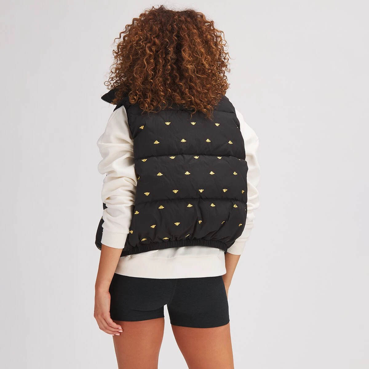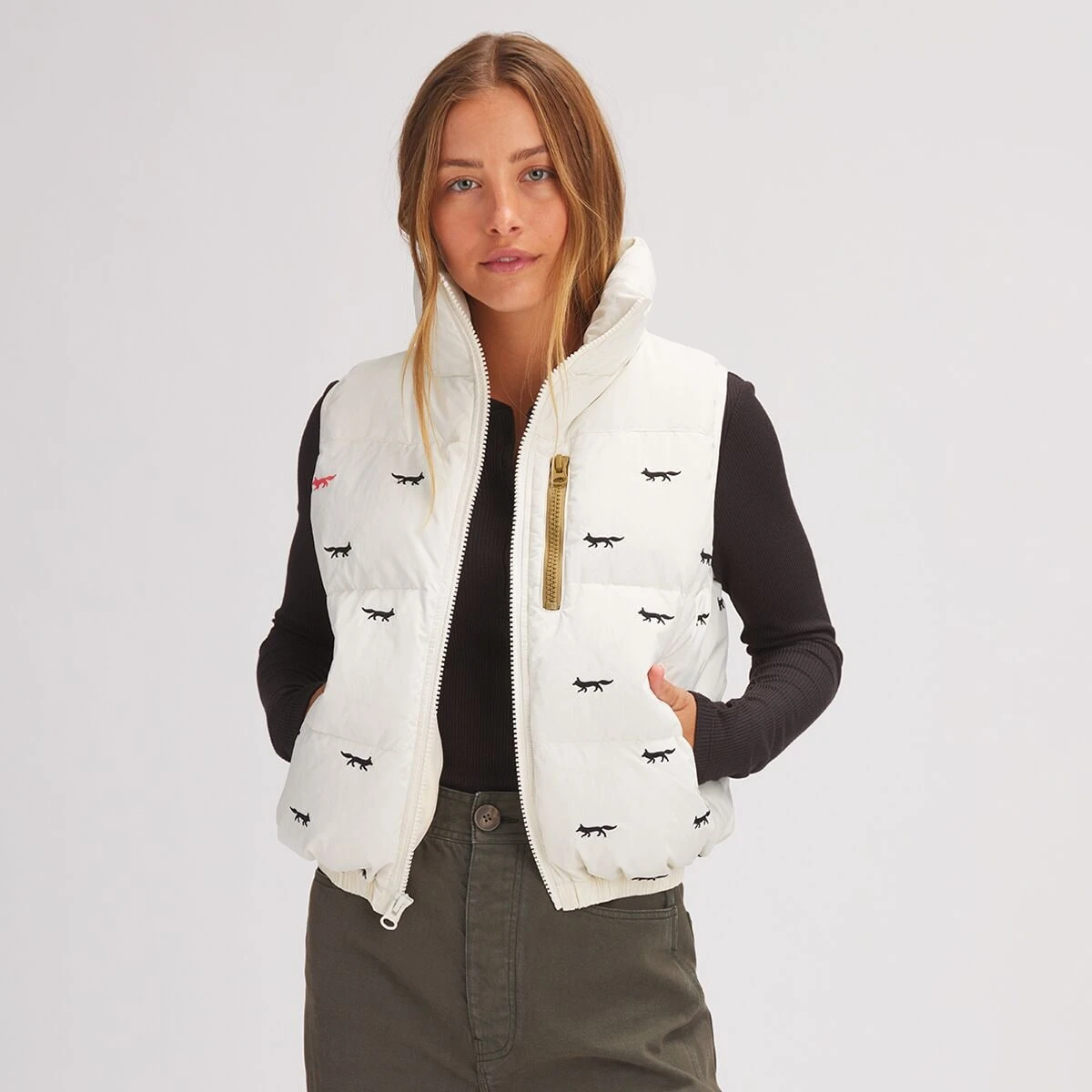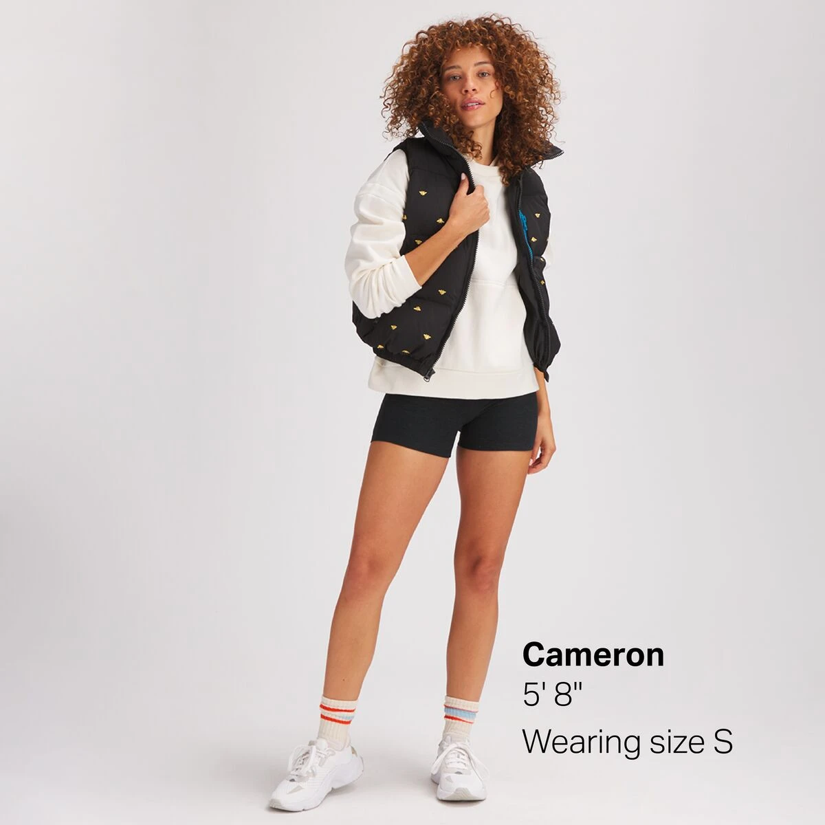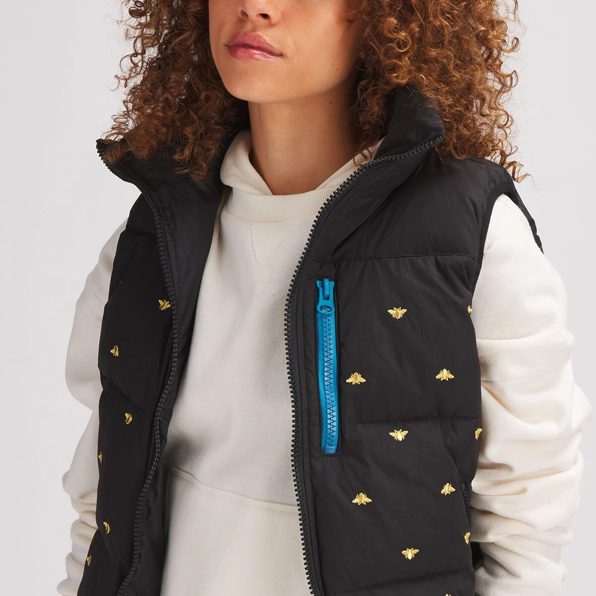 Our Basin + Range Puffer Down Vest + Embroidery keeps our core cozy in low temps with its lofty fill trapping heat and its regular fit layering comfortably over our sweaters.